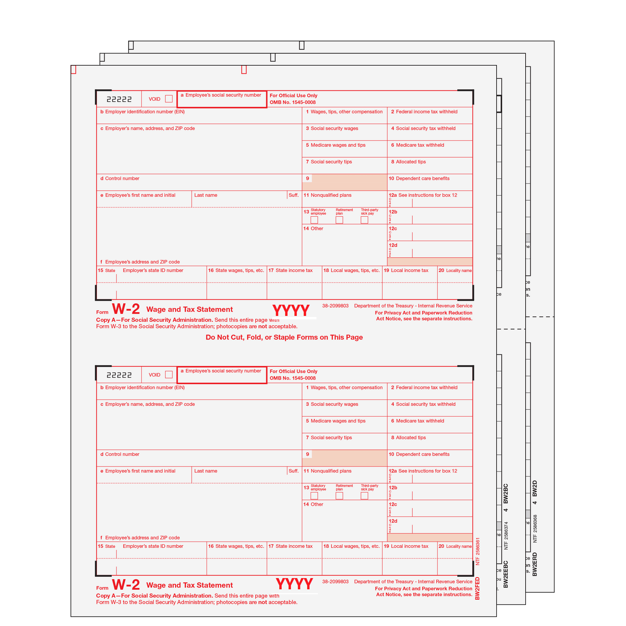 W2combs405Condensed W-2 Form 4-part Set (2-up Copies)