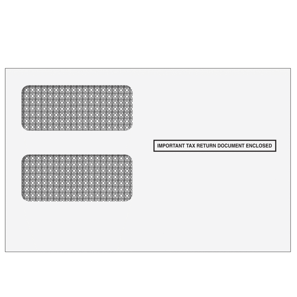 Use this double window envelope to mail any standard or condensed 2up 1099 or W-2G recipient form. The security tint and cellophane windows ensure the privacy of information. Check your Software for Envelope compatibility. If you’re unsure about compatibility, please request a sample.