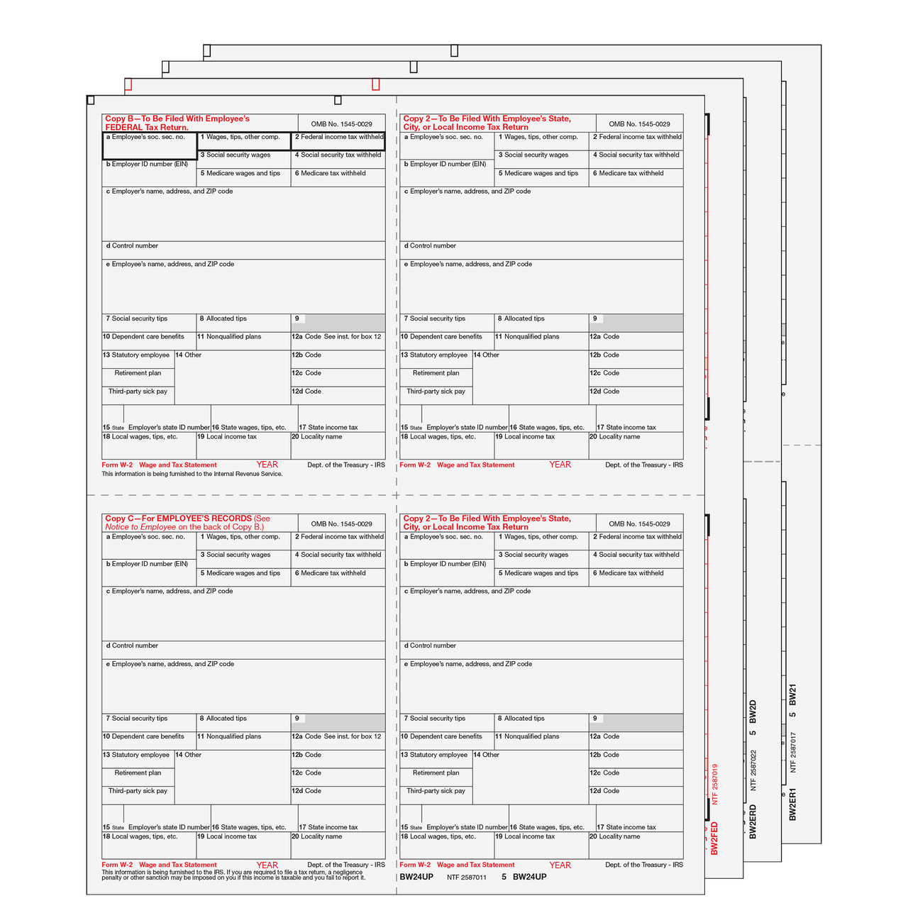 Check your software for compatibility. Employee copies are provided on a 4-up quadrant form and are ready to fold, insert, and mail. Print each copy in a batch. No collating required.